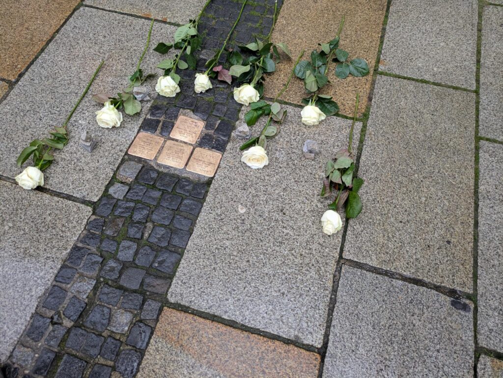 Der Gedenktag begann schon am späten Vormittag mit einer kleinen Zeremonie an den Stolpersteinen der Familie Pick in der Ludwigsstraße, die der Stadtjugendring gemeinsam mit dem Bund der katholischen Jugend, der Evangelischen Jugend und dem Gymnasium Leopoldinum veranstaltete. Mit Rosen, die niedergelegt wurden, und einer musikalisch umrahmten Schweigeminute setzen die jungen Leute ein eindrucksvolles Zeichen gegen das Vergessen.