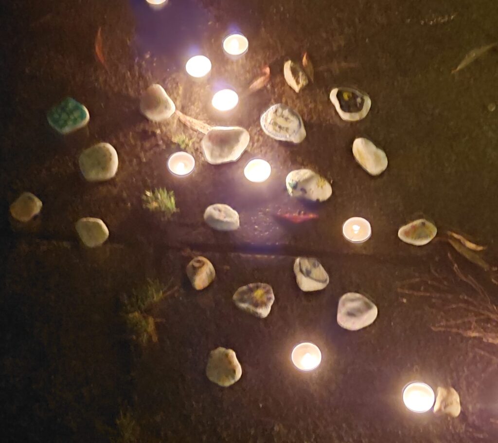 Lichter und Steine am Mahnmal zum Gedenken an die Verfolgung der jüdischen Bevölkerung