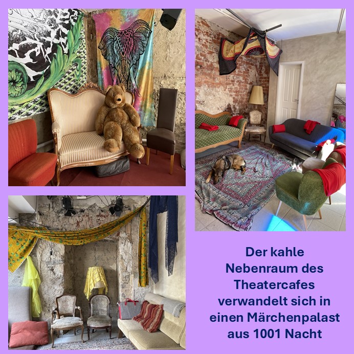 Am Sonntag, den 22. 3. 2026, lasen wir OMAS GEGEN RECHTS im Rahmen der „Internationalen Wochen gegen Rassismus“ für Kinder im Grundschulalter aus Kinder- und Jugendbüchern zum Thema Rassismus, Feindschaft, Freundschaft und wie man friedlich und demokratisch miteinander leben kann. Dazu verwandelte sich der karge Nebenraum des Theater Cafés Passau in ein wahres Vorleseparadies aus 1001 Nacht.